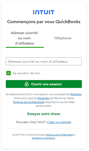 vers l’écran de connexion QuickBooks. Connectez-vous à votre compte QuickBooks